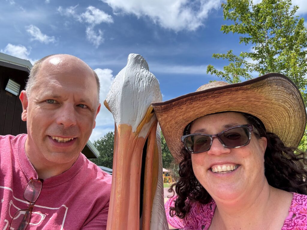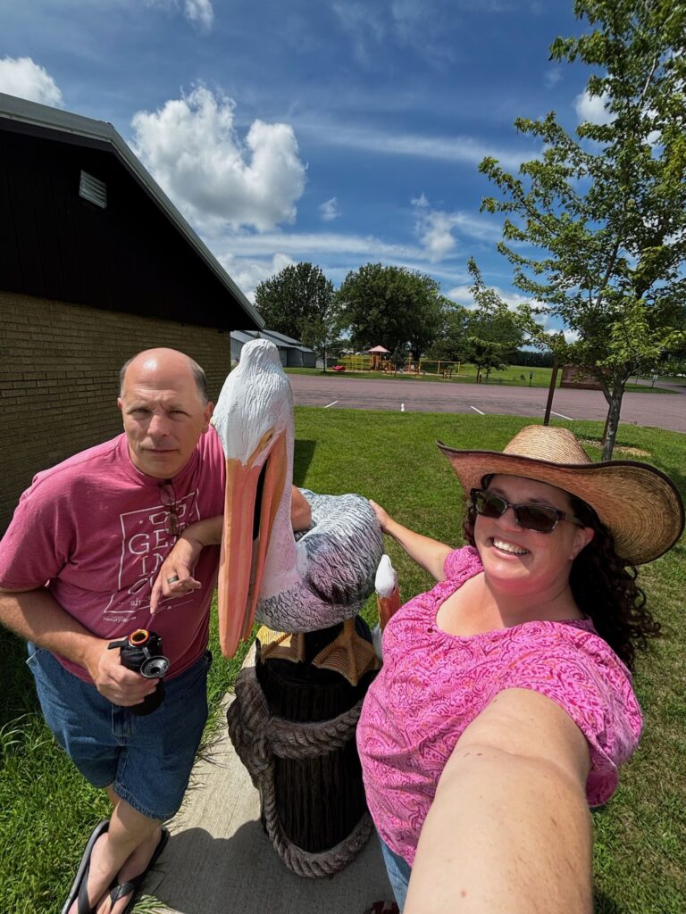 Our (picnic) lunch stop, a few hours later, was at a little park in Windom, MN. There was a lake (Cottonwood Lake) with a beach. It was nice. On most of my previous trips to Yellowstone, my overnight stop on the way out and back has been at Theodore Roosevelt National Park, where the campground is called Cottonwood. We weren’t going there on this trip, but I reflected that it felt right to stop at someplace with “Cottonwood” in its name on the first day of a trip to Yellowstone.