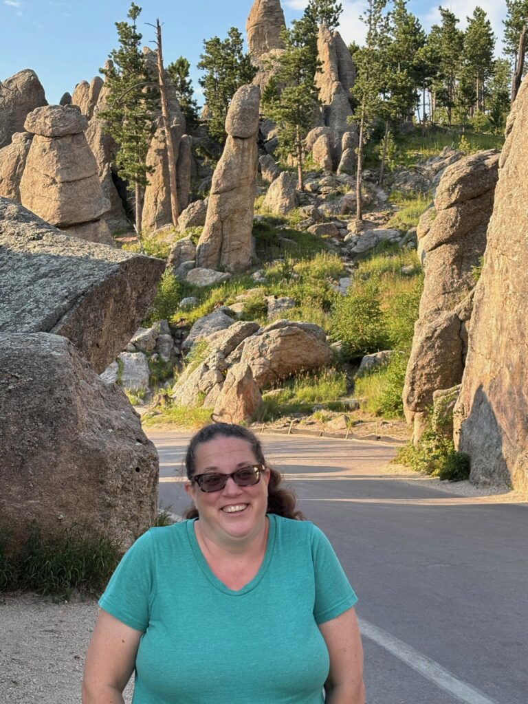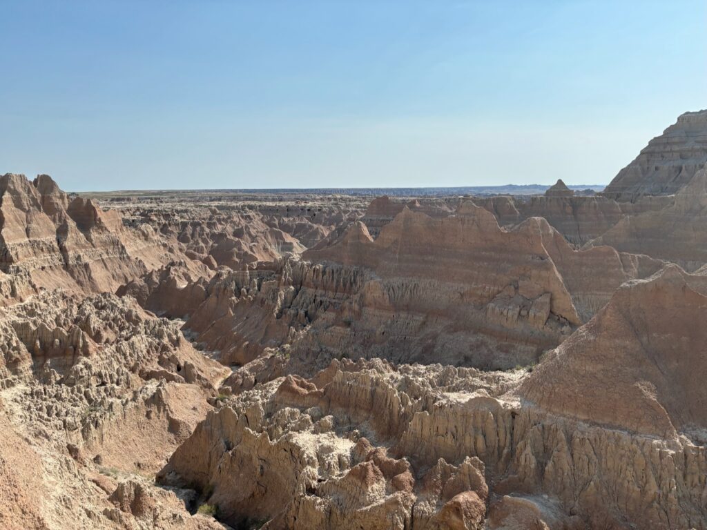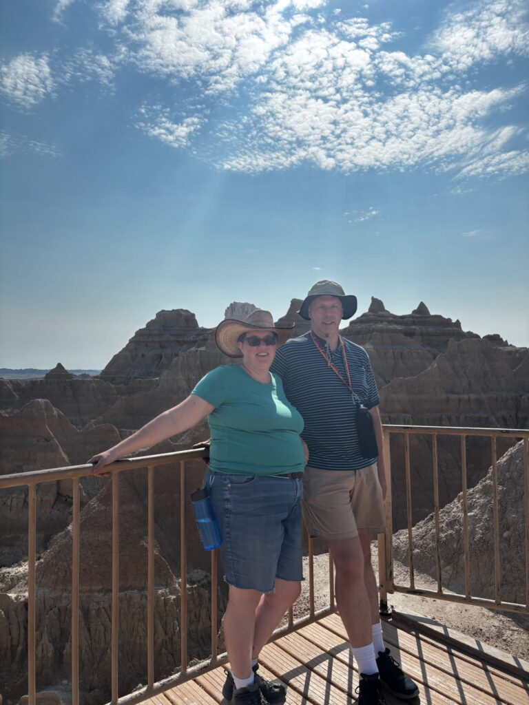 So, the time has come to tell the tale of another trip to Yellowstone. Obviously, the big thing that made this trip different from my previous ones was that it was with Emily (!). It’s officially the longest trip that we’ve ever taken together (so far), both in terms of duration and in terms of distance traveled (but only until next year, when we finally go to Italy). I had wanted to take Emily out there…well, almost ever since my last trip, which took place just a few weeks after we met—although at that point, of course, I didn’t actually know how much a part of my future she might, or might not, turn out to be. But I do remember an occasion, pretty early on in our relationship (though I can’t recall exactly when), when I was telling her about my trip, and she ventured to say “Take me there sometime?” That sounded like fun to me, and the hope that it might eventually happen stuck in my brain. Later, though, when I started bringing up the idea of actually planning a trip there, I found that she needed a bit of convincing. In particular, I think, the long road trip out there wasn’t very appealing to her, and she was very inclined toward the view that other, closer destinations that she had never been to ought to be prioritized…or at least included in our plans. Emily had actually been to Yellowstone once before, but only for part of one day; as far as she remembers, she saw Old Faithful, then drove through the park en route to the Beartooth Highway, and that was about it. Also, this was 29 years ago…and rather than driving all the way out there from Minnesota (or Wisconsin), she flew to Montana and drove from there. So Yellowstone wasn’t 100% new to her, but it was mostly new (newer, even, than it was to me in 2009, when I went as an adult for the first time, but had prior memories of it from a short visit as part of a boy scout trip in 1988 at the age of 14). But pretty much everything between Minnesota and Yellowstone was uncharted territory for her. Thus, both to break up the long stretches of highway travel and to take advantage of the opportunity to visit some places that she had never been before, we decided to take the South Dakota route rather than my customary North Dakota one (even though it’s actually longer overall), and to spend a day in the Badlands and Black Hills areas in between the two full-on road tripping days that it would take to a) get to that area, and then b) get from there to Yellowstone. For my part, of course, I’d been to the Black Hills thrice before (in fact, some of my very earliest memories, period, come from the trip that my parents and I took out there when I was 3 years old!), but the most recent of these times was every bit as long ago as Emily’s prior visit to Yellowstone (1996, 29 years ago). So, some time in that area had its appeal for me as well.
