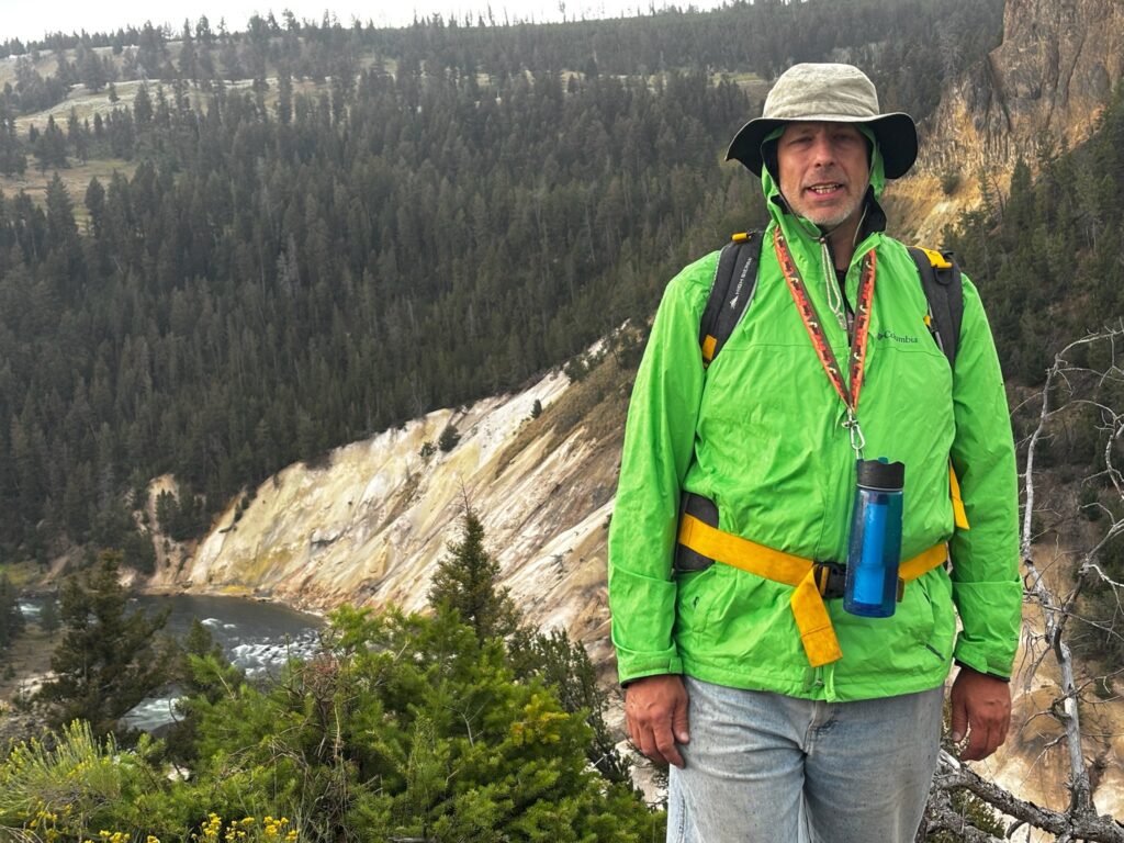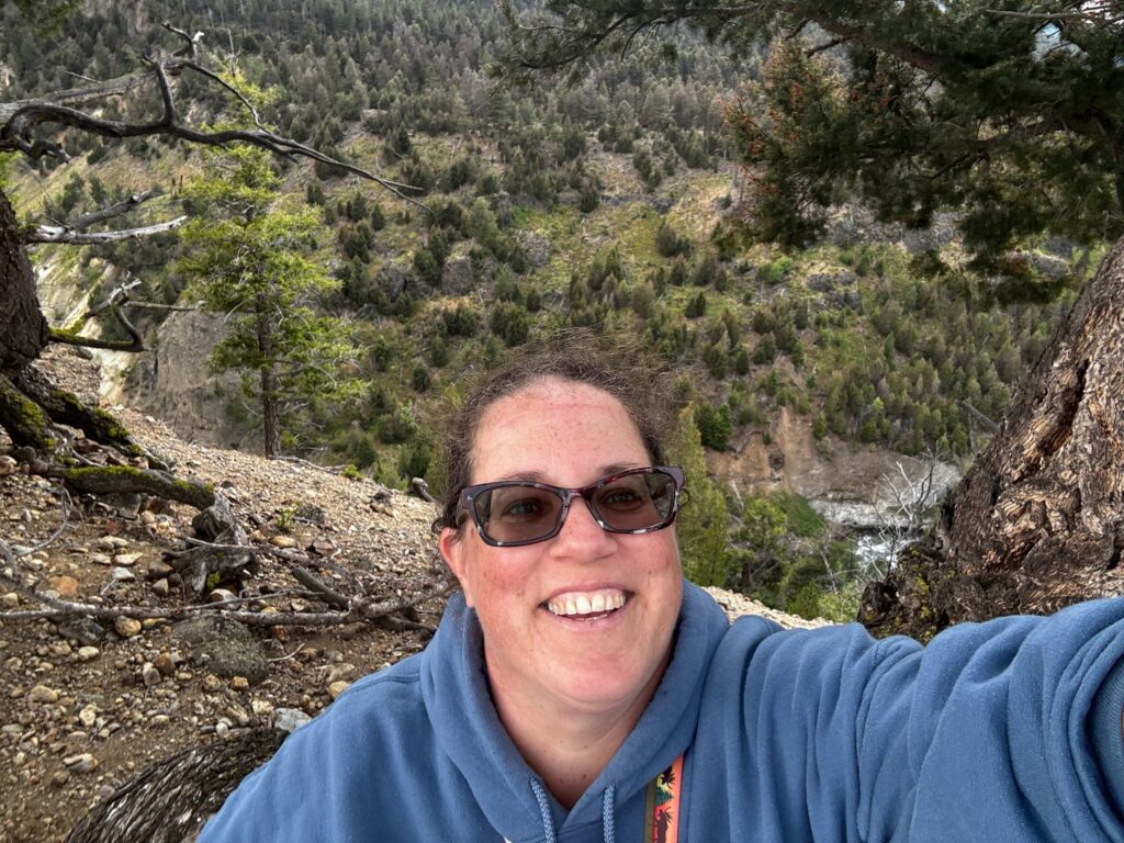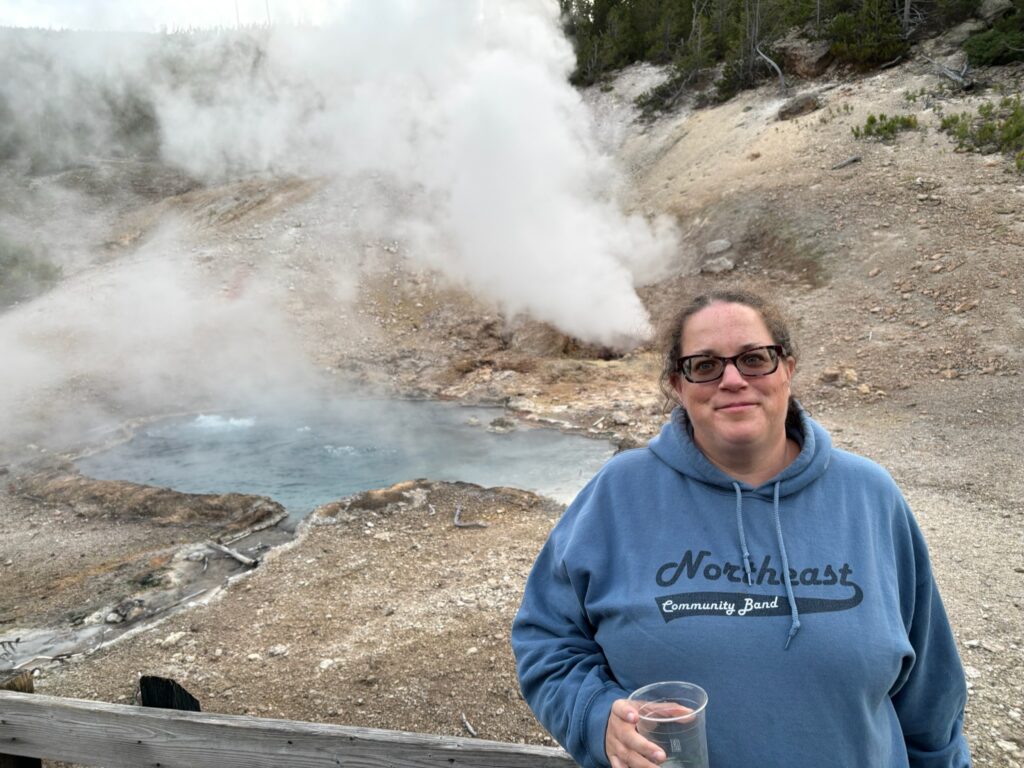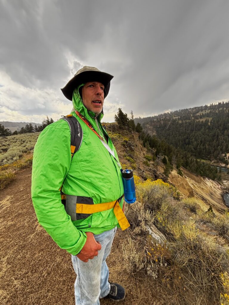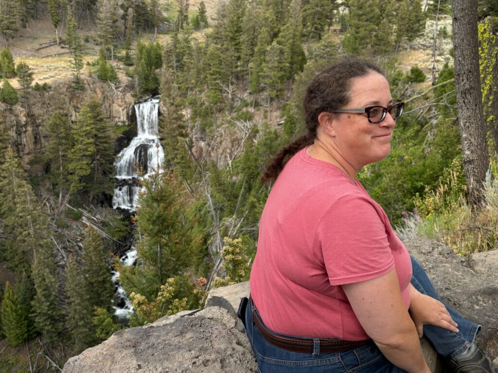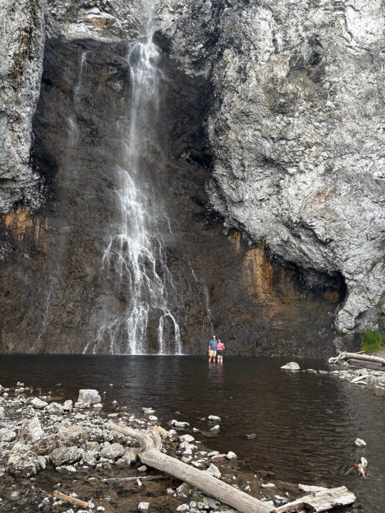 Fairy Falls is one (of several, admittedly) of my favorite spots at Yellowstone. I’ve written about it multiple times before, and while I’m not going to extensively recap, a brief summary would be: 1) Hiked to it (with Jen) via the shortest route in 2009, and both the hike and the falls made a huge impression on me (this played a big role in my discovery of how much I liked hiking out there), but I didn’t get to wade out into the pool beneath the falls. 2) Hiked there alone, via a much longer route, in 2016 (my first solo trip), and it was my favorite hike of that most awesome of trips. 3) The short route to Fairy Falls was the first leg of my epic two-day hike with overnight stay at a back country campsite in 2021. To that, happily, I can now add: 4) Hiked there (again via the short route) with Emily in 2025!