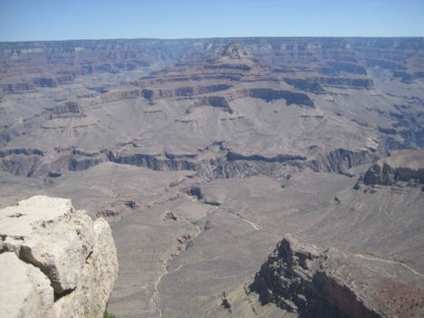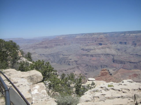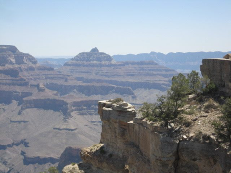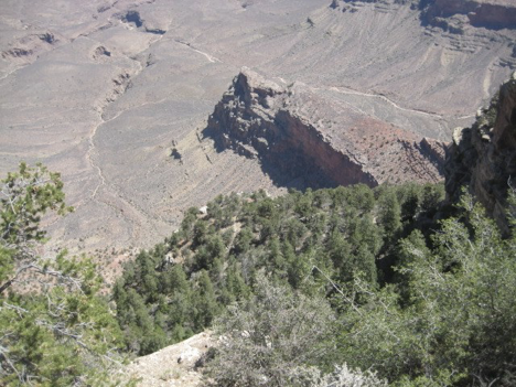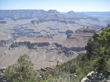 As you might expect, I woke up with some rather sore leg muscles on this morning. At first, it felt like I could barely walk! But it was my last day at the Grand Canyon, and while I didn’t feel the need to tackle anything too ambitious (like, say, another trek down into the canyon), I was determined to spend at least some “final time” enjoying canyon scenery, and hopefully walking off some of the stiffness in my legs. So I decided that, since I hadn’t been over toward the eastern part of the immediate park area since my first day, I’d take the shuttle bus thataway, check out a particular scenic point that I hadn’t been to yet, and walk some portion of that end of the rim trail (the opposite end from the one that I’d walked three days earlier).
