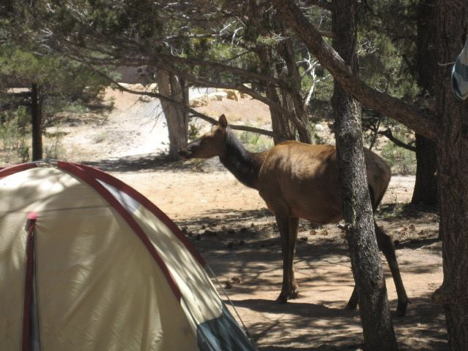 But not right away. I did sleep in a bit after the previous evening’s exertions, and then, even after getting up, I allowed myself the most leisurely morning of the trip. The previous day, down at Indian Garden, I had almost finished the book that I’d been reading. So, I relaxed at my campsite long enough to finish my book this morning, and then got going after that.