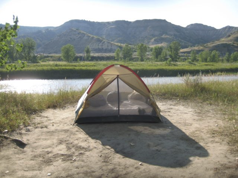 Less delightful was the extreme heat in eastern ND that evening (though happily, it did cool off a bit after dark). Die-hard tenter though I am, I must admit that I didn’t mind driving (in my air-conditioned car) back into town after getting set up, and tracking down my brother and his family (in their air-conditioned camper) in the city campground, and hanging out to chat with them for a bit. (Actually, when I first got there, I found the camper empty but for my 13-year-old nephew with his nose in a book. Rumors that this kid is essentially a younger me have NOT been exaggerated. I barely got 5 words out of him about the rest of the family being “out hiking” before he went back to his book. 🙂 )