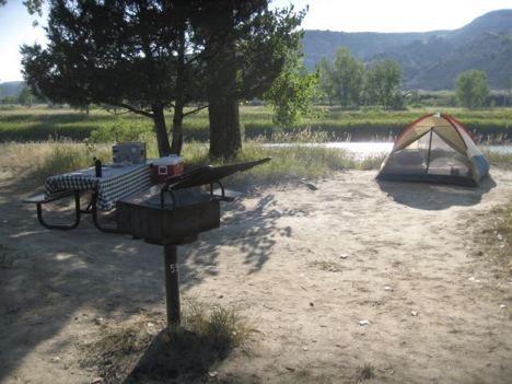 In due course, I arrived in Medora, ND, and proceeded (as usual) into Theodore Roosevelt National Park, where I had a camping reservation for the night. When I saw my campsite, I was delighted; I’m pretty sure it was more or less the best one in the campground.