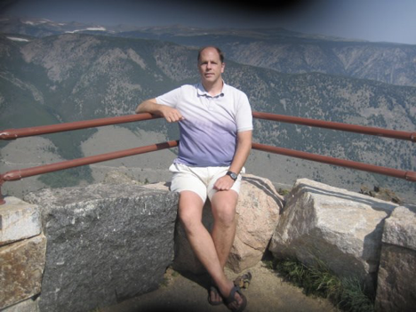 I got up unreasonably early that morning (4:45 am) in order to be on the road by 5:30 am, because I wanted to get to Yellowstone around lunchtime so that I could get a hike in before even proceeding to my campground and getting set up/settled in. Crazy, yes, I know—and that’s not even the half of it. But I’m getting ahead of myself; first, of course, there was Beartooth Pass to drive through, and en route, I had to stop at the scenic overlook spot and get someone to take the by-now-traditional photo for me: