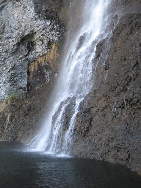 There were some other people there at the base of the falls, including a guy with whom I struck up a brief conversation while resting for a moment. He was actually some kind of guide who was leading a guided tour for the two or three others who were with him. He wanted to know where I’d hiked out from, and we just chatted about the park and about where we each were from (Bozeman, in his case) and so forth. It was pleasant.